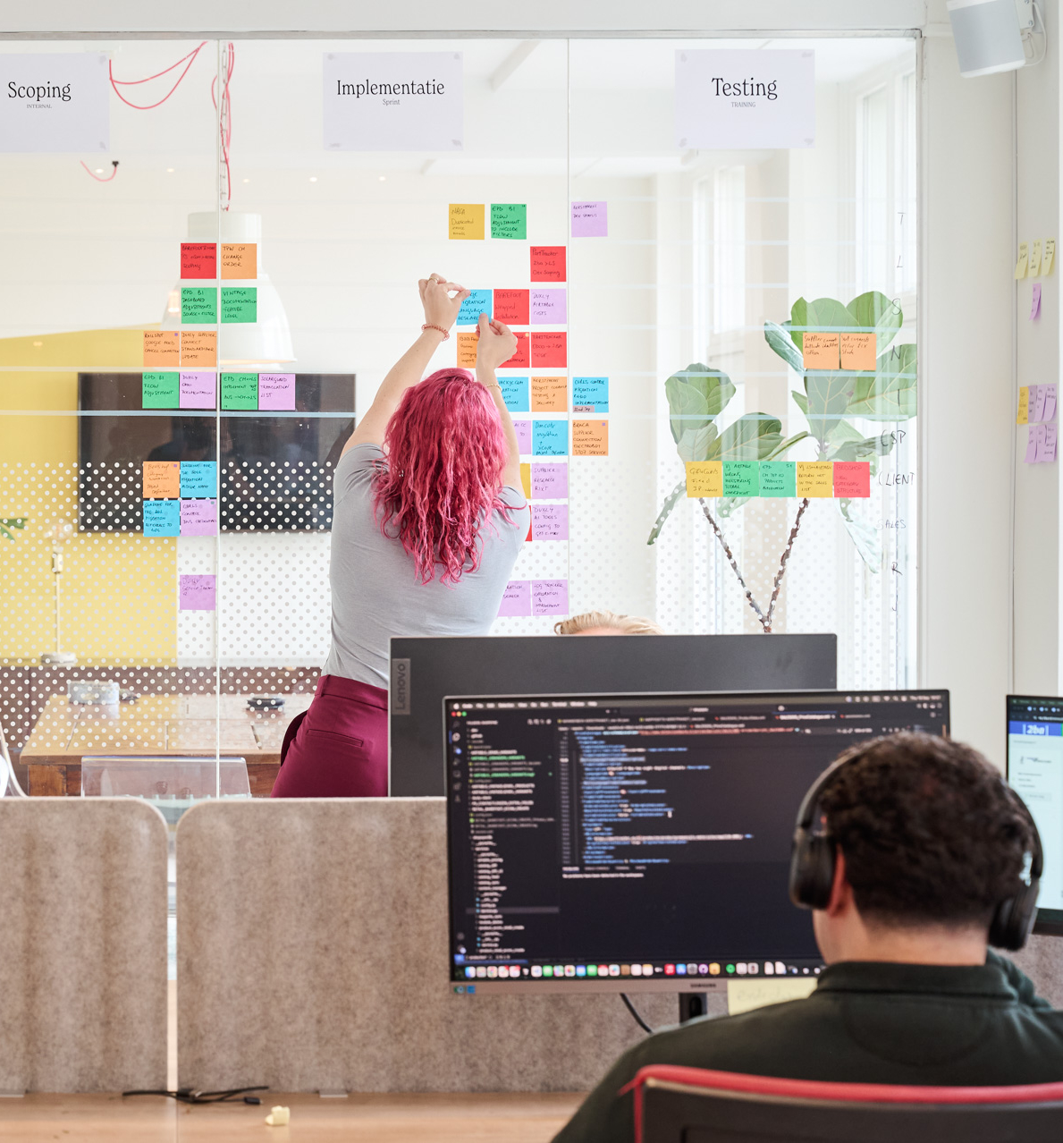 We ontwikkelen, testen en verbeteren in korte sprints. Hierdoor houden we de voortgang zichtbaar en kunnen we snel inspelen op nieuwe inzichten.